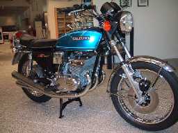 The first big ride was exciting, the two stroke engine and small light bike made for a great deal of riding fun, after about half an hour of trying it out I lost power. I decided to baby it home to see what it was and turned homeward. A few minutes later another loss of power and this time there was no babying home, I was stuck. I needed a trailer to get the newly fixed and tuned bike home, how embarrassing. I called Michael who came over to check out the damage. Two pistons (out of three) had a hole melted in the top of them. Of course that was a source of great amusement for my friends. "How many pistons does it take to repair a GT 380?" was the question asked of me regularly. Of course the answer is five as I had to buy two more after that first ride. Another good joke was my anti-theft device, melting pistons.......Ha Ha.