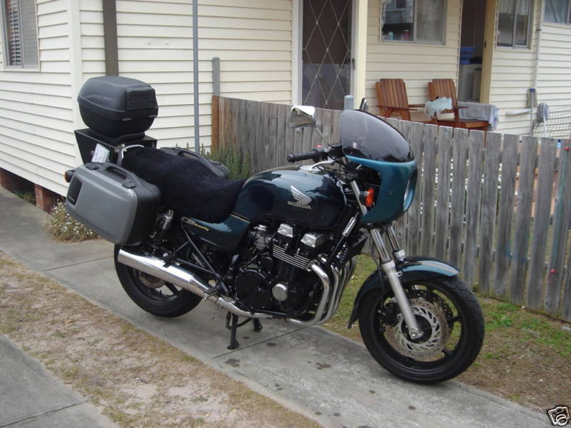 Once again is my friend This time I have found a 1996 Honda CB750 in excellent condition and for a very reasonable price. This one also comes with a topbox and hard panniers installed already and since I want to do a few weekends it fits into my plans perfectly. I picked it up and rode the 100 odd Ks from the old owner to my house and all the time thinking "this isn't steering right" like, maybe the head bearings are shot, or the fork seals are blown... But, oddly enough, after a bit more riding i just worked out that this baby liked to be tipped into corners with a bit more purpose, and not rushed into corners like i could do on the scooter. It just needed a little more muscle. Once we worked each other out me and the ceebee are having more fun than ever. I just want to ride. Anyone free this weekend?